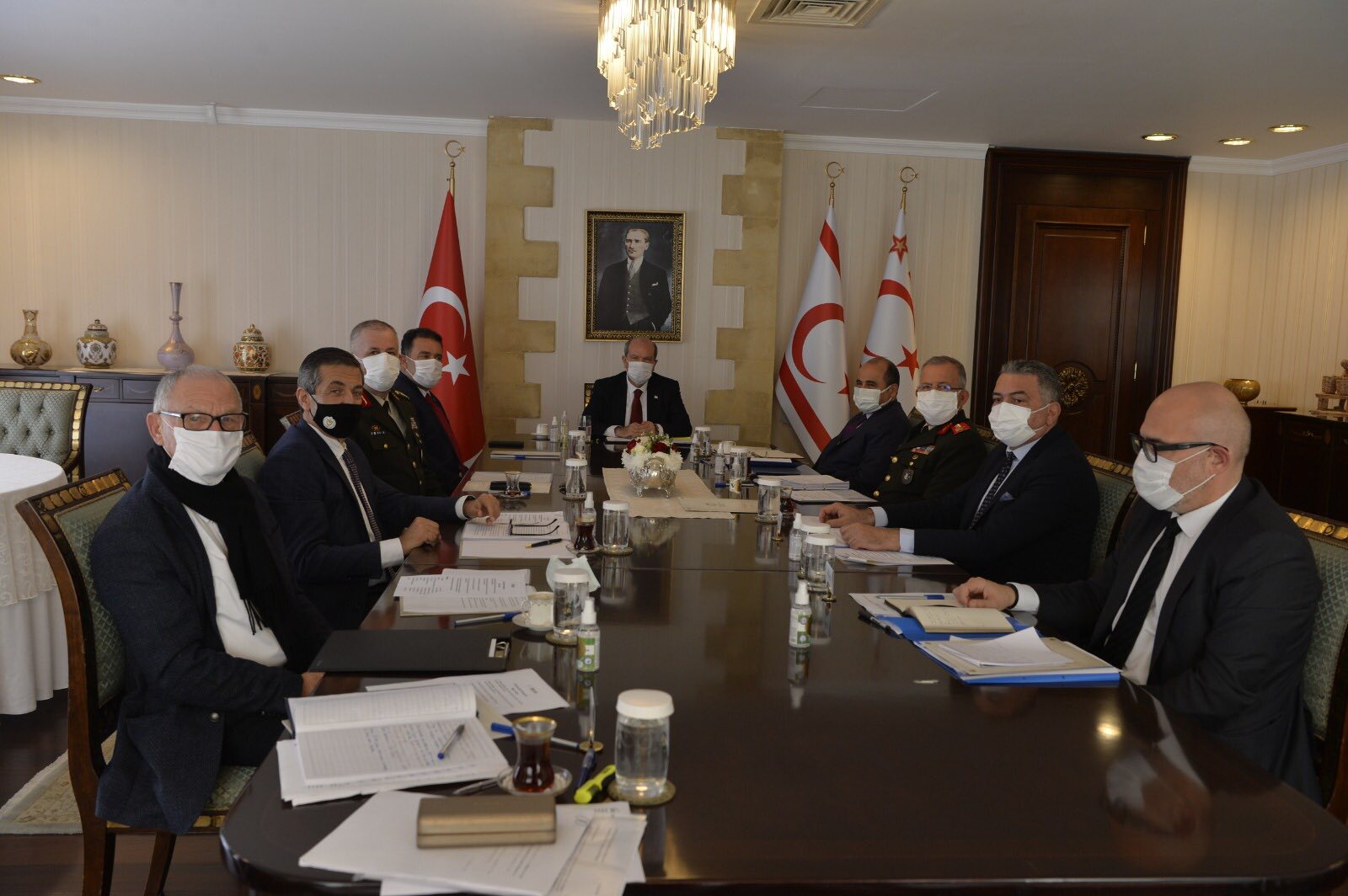 İki oturumda gerçekleşen toplantıya, Başbakan Hamza Ersan Saner, Türkiye Cumhuriyeti Lefkoşa Büyükelçisi Ali Murat Başçeri, KTBK Komutanı Tümgeneral Sezai Öztürk, Güvenlik Kuvvetleri Komutanı Tümgeneral Zorlu Topaloğlu, Dışişleri Bakanı Tahsin Ertuğruloğlu, Sağlık Bakanı Ali Pilli, Cumhurbaşkanlığı Müsteşarı Okan Donangil, Sağlık Bakanı Müsteşarı Ali Çaygür, Cumhurbaşkanı Özel Temsilcisi Ergün Olgun, Teknik Komiteler Koordinatörü Güneş Onar ve Cumhurbaşkanlığı Sağlık Özel Danışmanı Prof. Dr. Nedime Serakıncı katıldı.