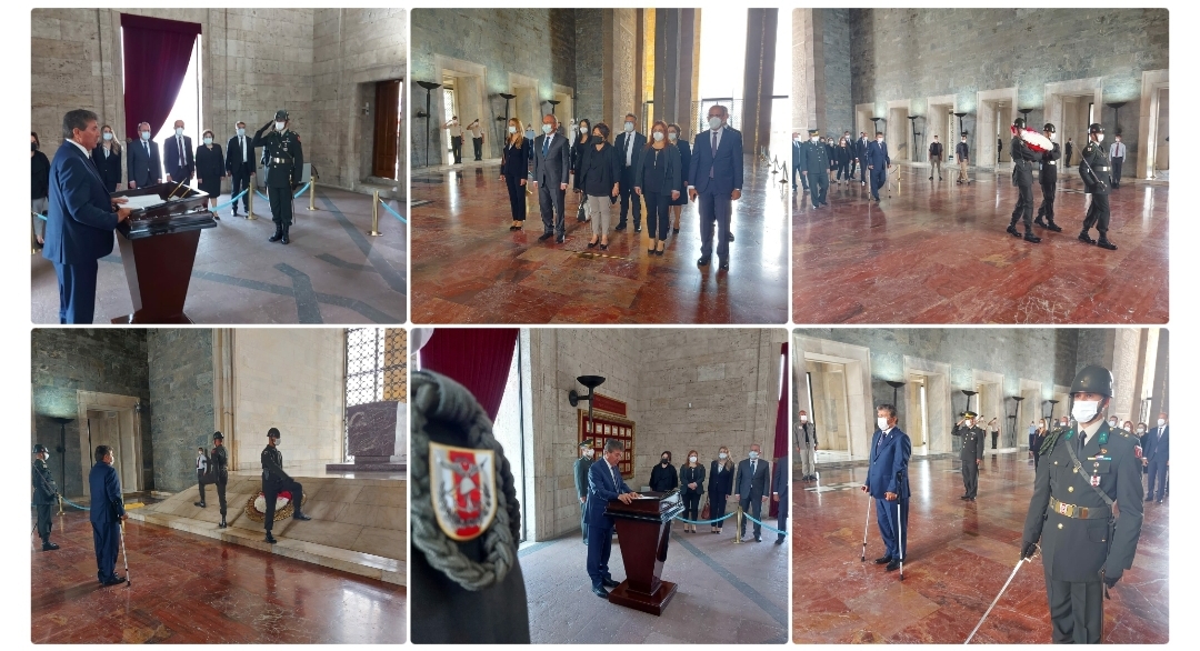 Mozoleye çelenk koyan Bakan Üstel, daha sonra Misak-ı Milli Kulesi’nde Anıt Özel defterini imzaladı…