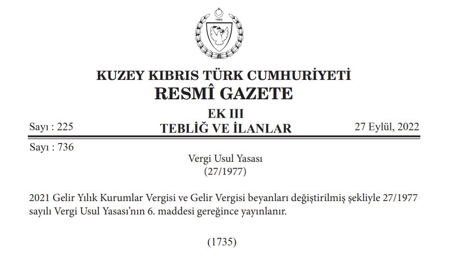 2021 Gelir Yılı Kurumlar Vergisi ve Gelir Vergisi beyanları Resmi Gazete’de yayımlandı.
