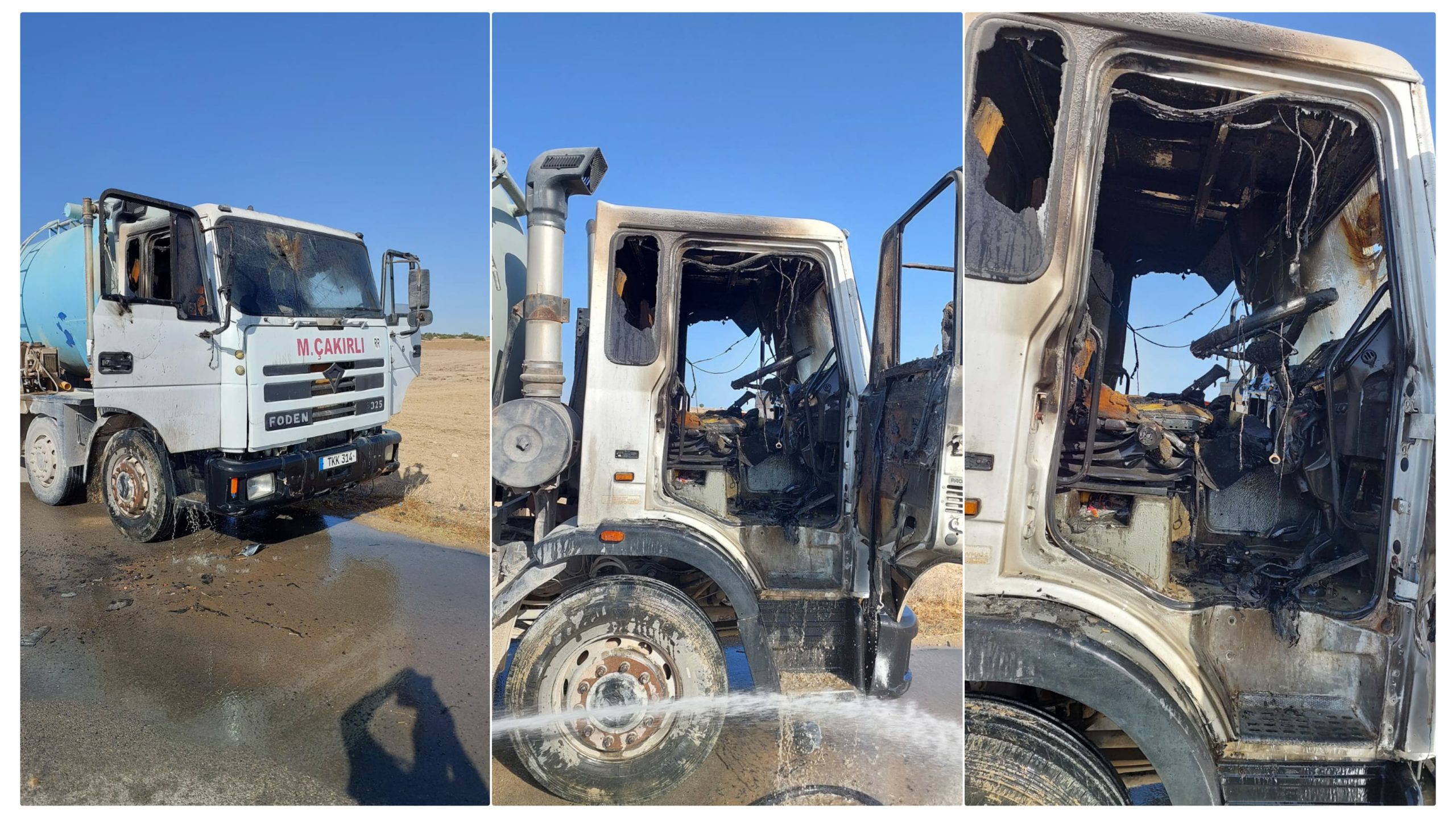 Polis Basın Subaylığı’ndan verilen bilgiye göre bugün saat 15:50 sıralarında, İskele – Ardahan yolu üzerinde seyir halinde bulunan Mehmet ÇAKIRLI yönetimindeki TKK 314 plakalı vidanjör aracın elektrik aksamlarının kısa devre yapması sonucu yangın meydana geldi.