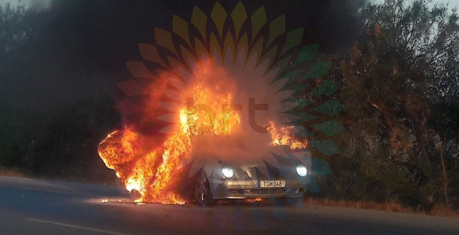 Polis Basın Subaylığı’ndan verilen bilgiye göre bu sabah saat 07.00 sıralarında Gazimağusa – Lefkoşa anayolu Korkuteli yakınlarında Gazimağusa istikametine doğru seyreden Yusuf Taylan ÖZAYDIN(E-22) yönetimindeki TGH 046 plakalı salon araç muhtemelen motor bölümünde meydana gelen elektrik arizasından dolayı tamamen yanarak kullanılmaz hale gelmiştir.