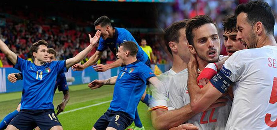 İtalya ile İspanya bugün, İngiltere ile Danimarka ise yarın karşı karşıya gelecek. İngiltere’nin başkenti Londra’daki Wembley Stadı’nda oynanacak yarı final maçlarında bugün İtalya ile İspanya karşı karşıya gelirken, yarın İngiltere ile Danimarka karşılaşacak. 60 binin üzerinde futbolseverin izleyeceği karşılaşmalar saat 22.00’de başlayacak.