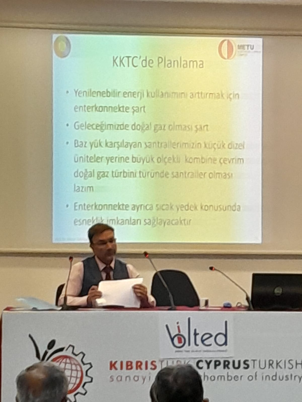 Prof. Dr. İcil, “Bugün dünyada enerji problemi vardır. Kullanılan fosil yakıtların yaklaşık 100 sene içinde yok olacağı bilinmektedir. Dolayısısıyla dünyada bunun için çözümler çoktan aranmaya başlanmıştır. Bugün ise KKTC’de enerji konusunda yaşadığımız problemlerde en büyük neden belirgin bir politika olmamasıdır” dedi.