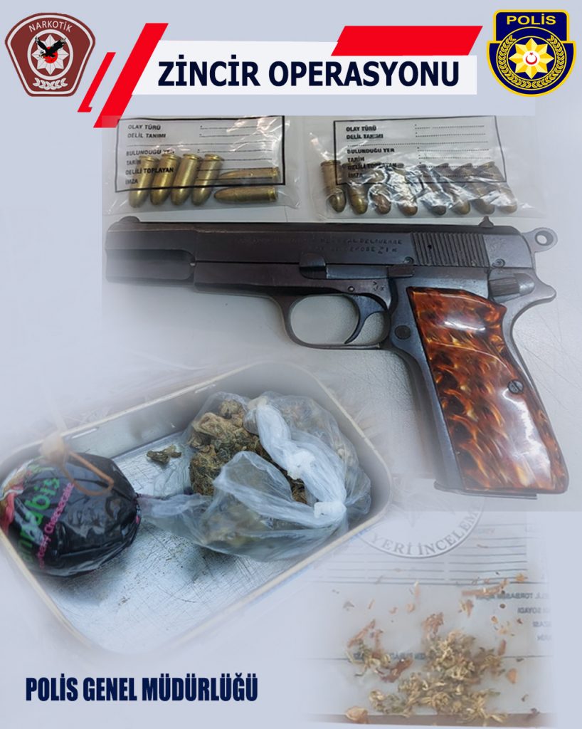 Polis tarafından Zincir Operasyonu kapsamında Yeşiltepe’de bir evde yapılan aramada uyuşturucu madde ve silah ele geçirildi.