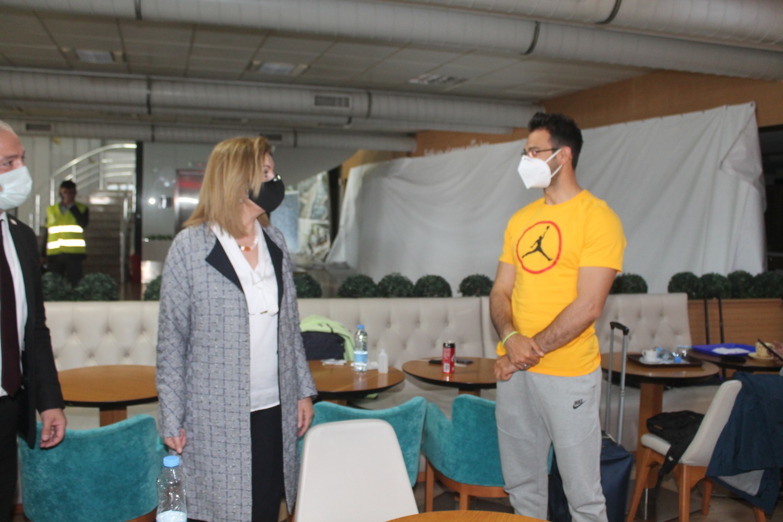 Bakan Canaltay, dün Ercan Havalimanı’nda yaptığı inceleme sırasında, yolcu bekleme salonunda bulunan Yiğitcan Hekimoğlu’na başarılar dileyerek uğurladı.