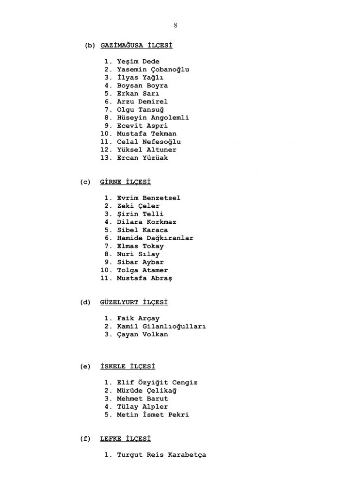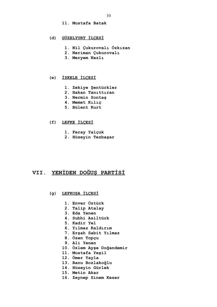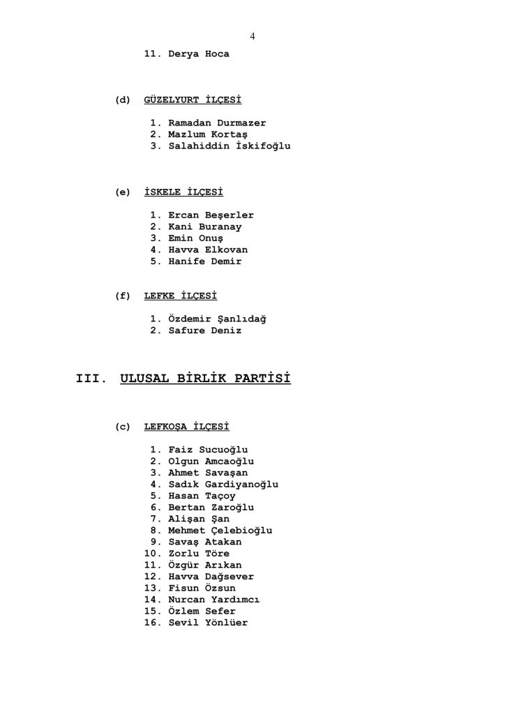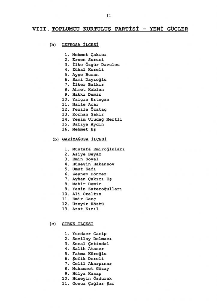 50 sandalyeden oluşan Cumhuriyet Meclisi için ilçelerin çıkaracağı milletvekili sayısı Lefkoşa 16, Gazimağusa 13, Girne 11, İskele 5, Güzelyurt 3 ve Lefke 2 olarak belirlenmişti.