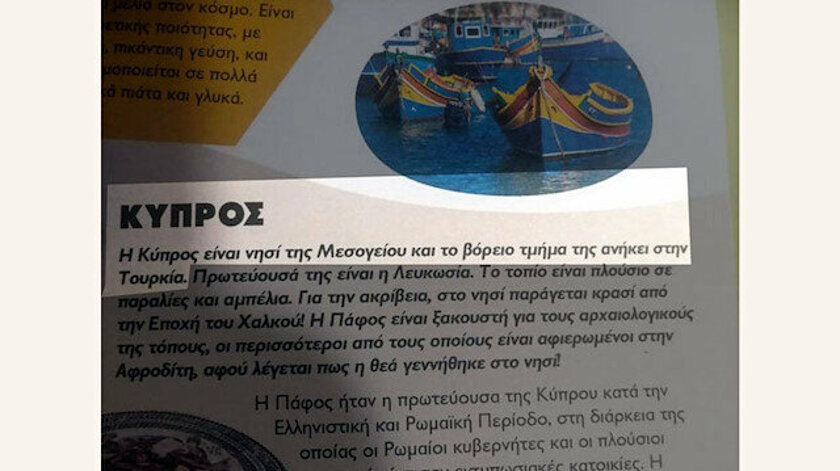 Toplatılan dergide “Kıbrıs Akdeniz adasıdır ve kuzey tarafı Türkiye’ye aittir. Başkenti Lefkoşa’dır.” ifadeleri yer alıyor.