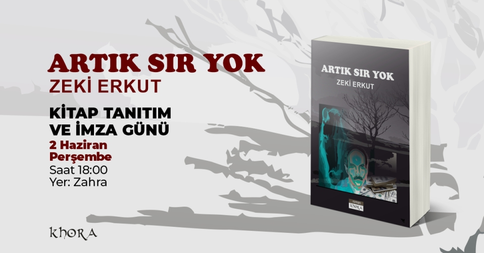 Zeki Erkut’un dördüncü romanı “Artık Sır Yok”, 2 Haziran Perşembe 18:00’de Zahra 11’de tanıtılacak.